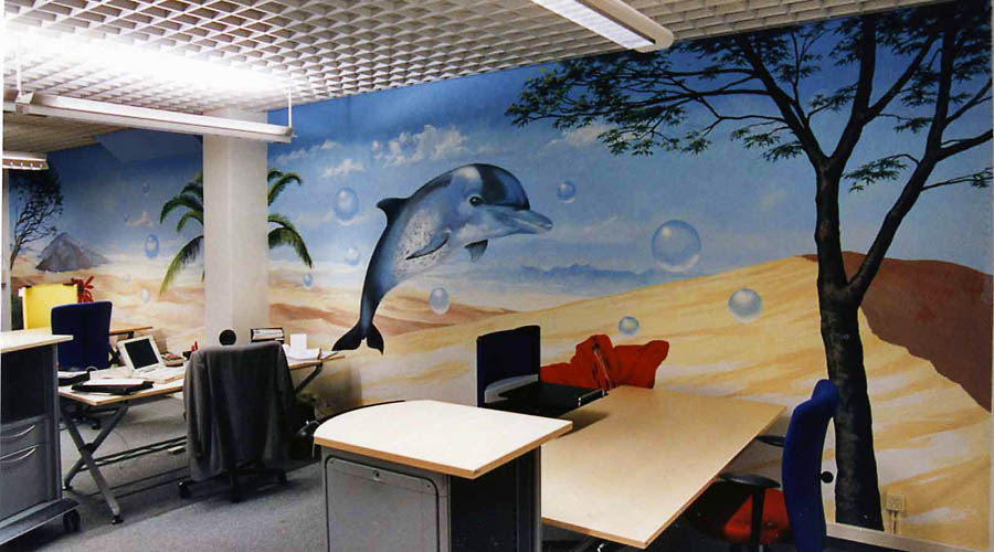 Wandmalereien geben Räumen Charakter. Mit viel Gespür für Raum, Farbe und Form entstehen individuelle Werke, die auf Wunsch auch gemeinsam mit Auftraggeberinnen und Auftraggebern entwickelt werden.